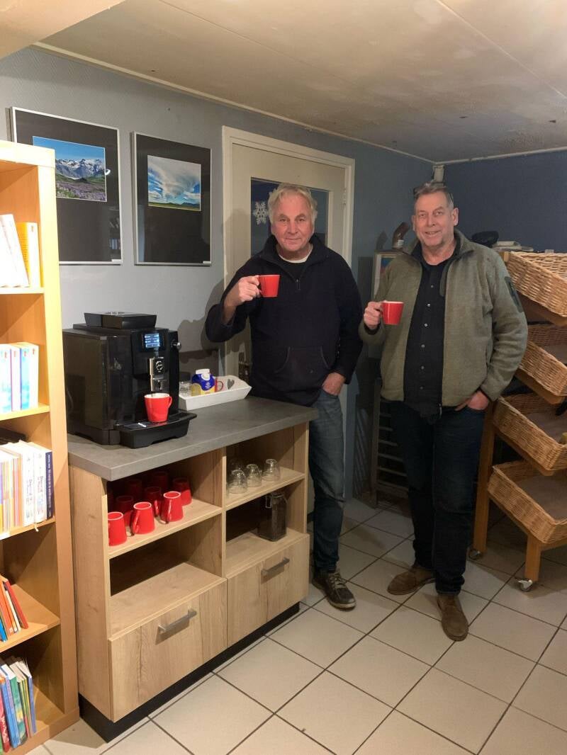 Kijk dit nou, zo mooi! We hebben een mooie koffiemachine gekregen. Geschonken door mensen die hoorden dat dit nog een wens van ons was. Daar is ‘even’ een mooi kastje voor gemaakt. Met als resultaat een prachtige koffiehoek. Zoals je ziet is het al in gebruik genomen.